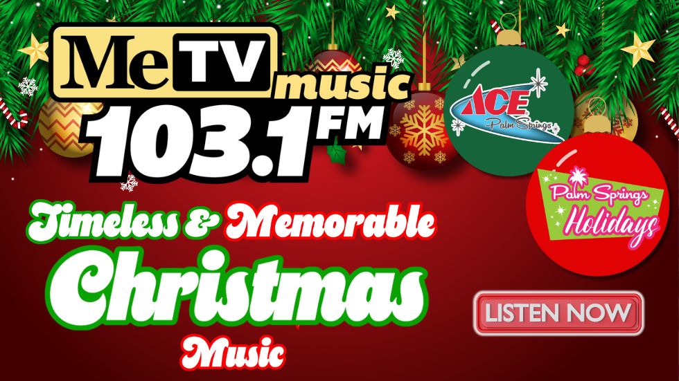'Tis the Season! 103.1 MeTV fm brings you all of your Timeless & Memorable Christmas favorites! Bing Crosby, Mariah Carey, Elvis, Wham, Brenda Lee & more! Brought to you by Palm Springs Ace Hardware, Palm Springs Holidays, Fantasy Springs Resort Casino, Stuft Pizza, Skylark Bar, Home Instead Home Care Services, and Contour Dermatology.